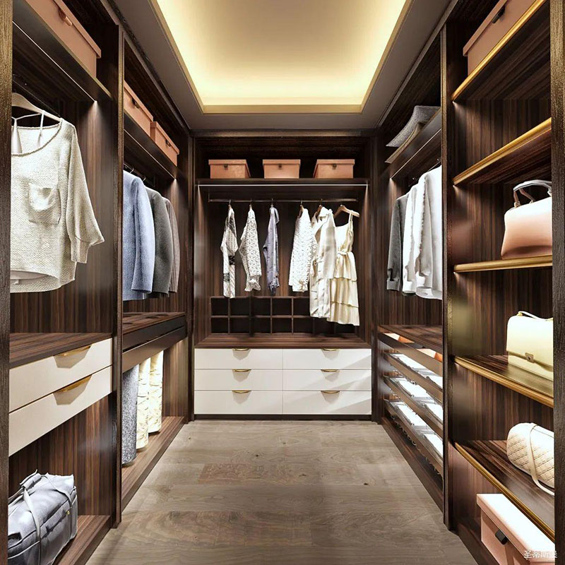 衣帽間充分將生活中的“簡”融入到設(shè)計中,一眼便可望盡的小隔間,把生活中的便利藏進了每個小細節(jié)里。舒適的拼接配色,演繹了意式極簡里的高端與奢華,溫暖的燈光點綴,襯托出溫馨的更衣氛圍,讓你擁有豐富多彩的著衣體驗。