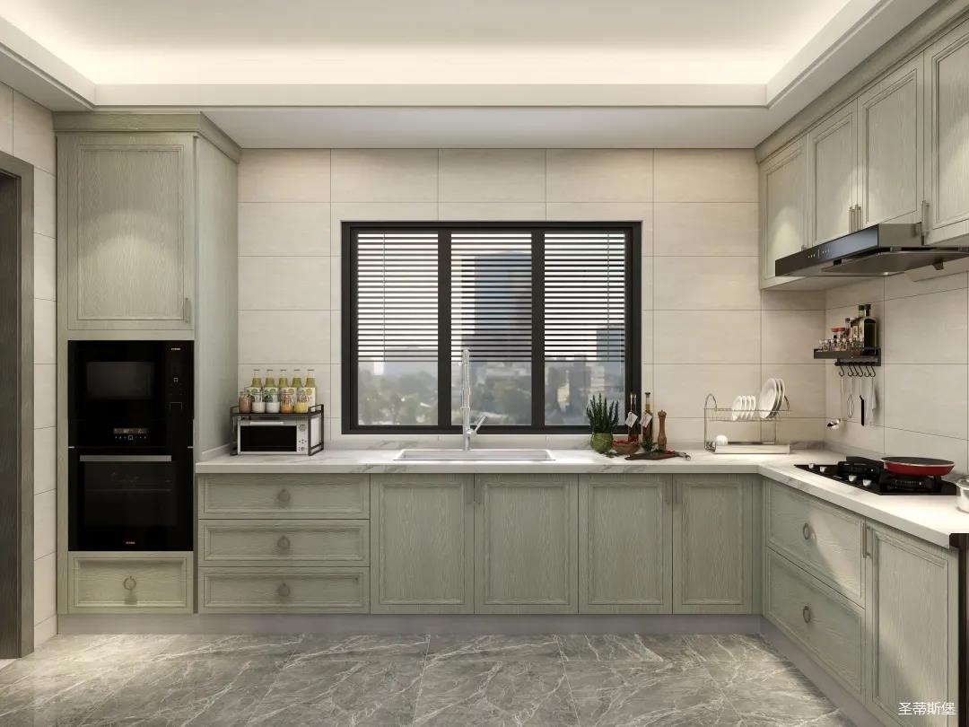 ▲廚房運用幾何線條鋪滿一整面墻,是滿滿的靈動和美感,實木材質的質感賦予了廚房空間品質與格調(diào)。按比例分配大小,打造成儲物格框架,讓每個角落都留下業(yè)主生活的痕跡。