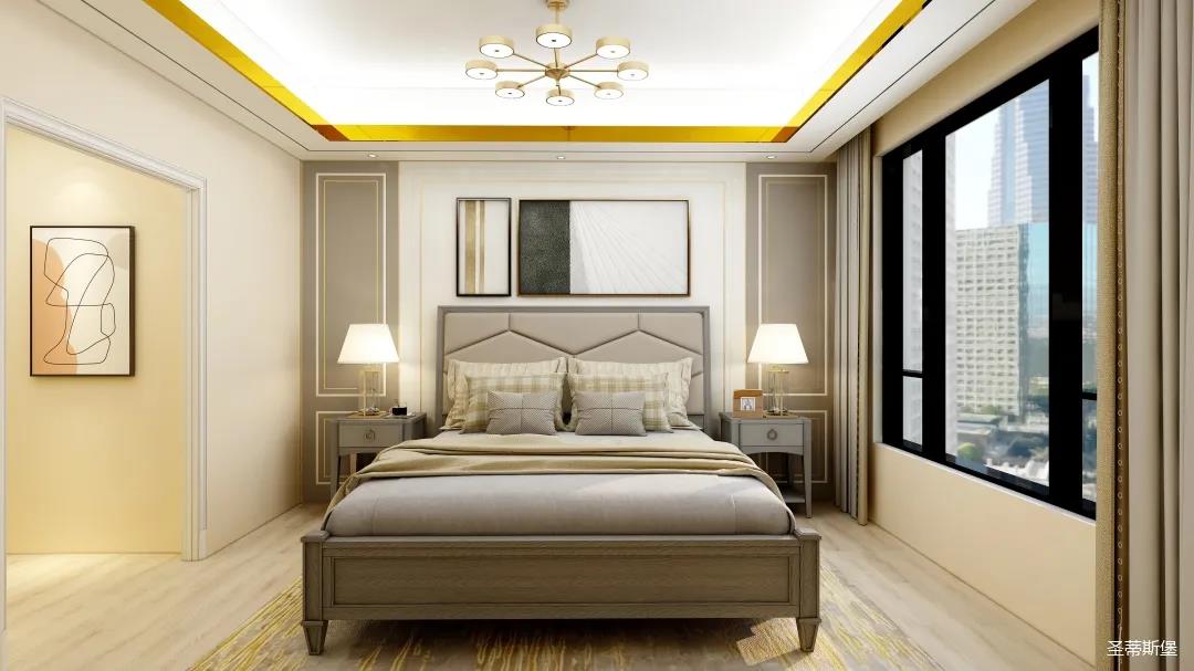 整個空間將對稱美進行到底,雖在設計思想上有所保留,但呈現(xiàn)的卻是一個擁有秩序感的家,高級的莫蘭迪灰與溫柔的象牙白居中搭配,優(yōu)雅又治愈,能在睡眠上帶來安穩(wěn)與舒適的張力。