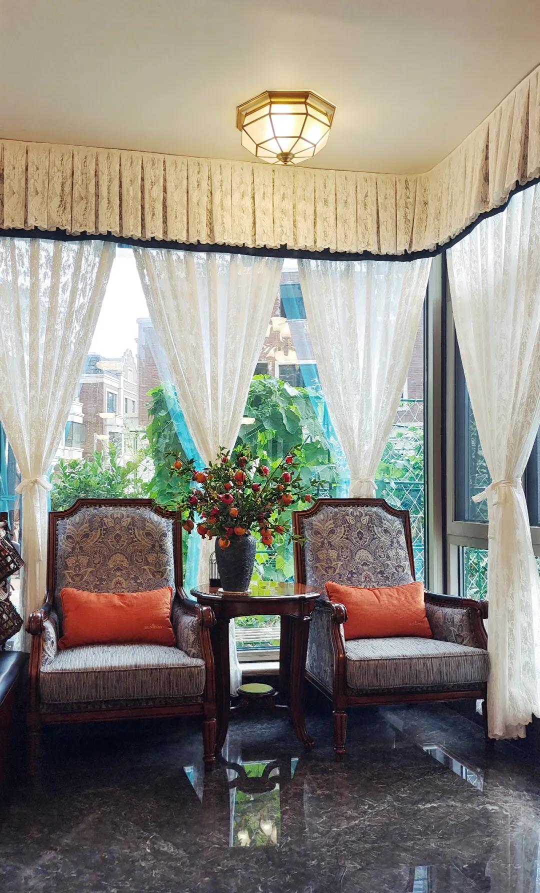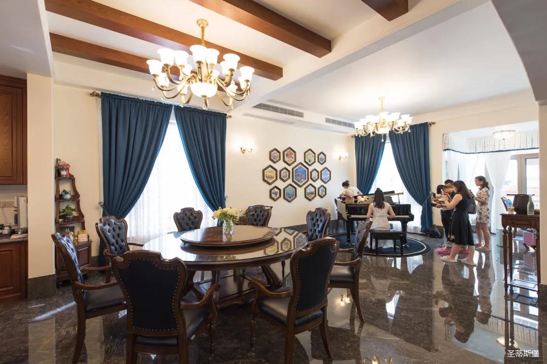 業(yè)主喜歡沉穩(wěn)的美式新古典風(fēng)格,整體統(tǒng)一的色調(diào),呈現(xiàn)了一種莊重的典雅感。醇厚的實(shí)木真皮沙發(fā),以古典的手法描繪出一種略帶復(fù)古的時(shí)尚奢華。一抹深藍(lán)迂回婉轉(zhuǎn)映照著空間的色系,明暗相對(duì),符合著現(xiàn)代審美,卻又不顯沉悶。轉(zhuǎn)角處的一臺(tái)復(fù)古唱片機(jī),還原了對(duì)音樂傾心的浪漫,抬起撥桿將唱針落下,隨著唱片的轉(zhuǎn)動(dòng)和音樂的響起,美好的一天就此開始。