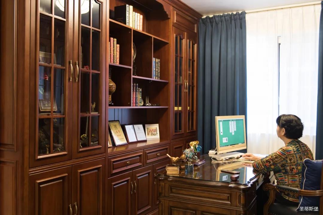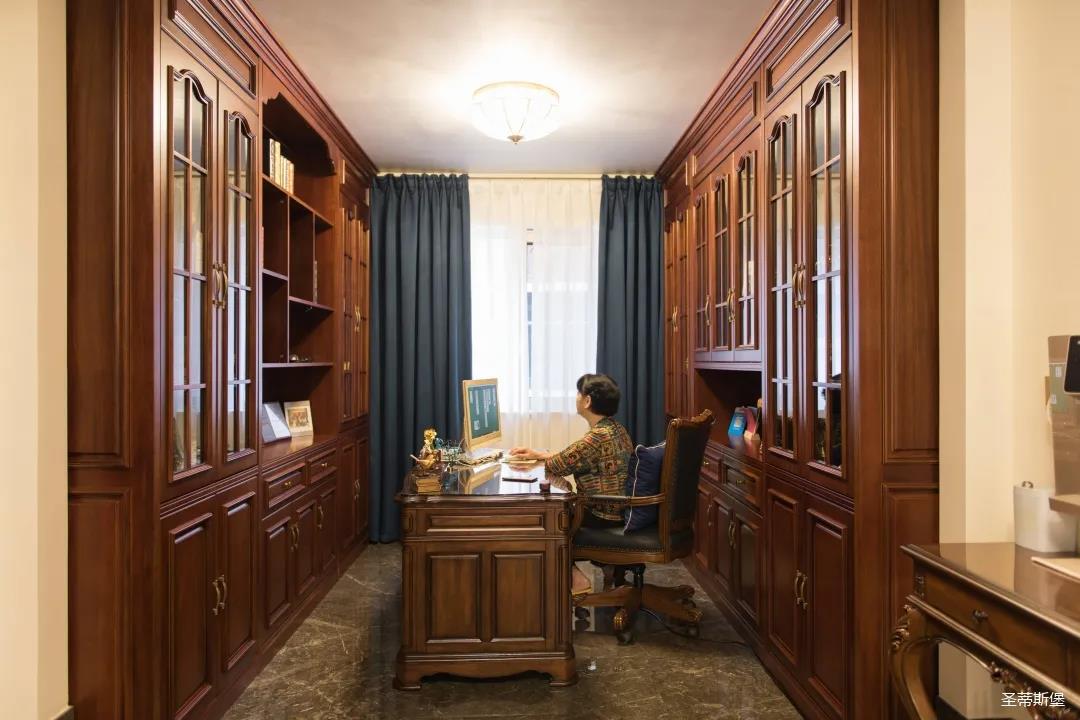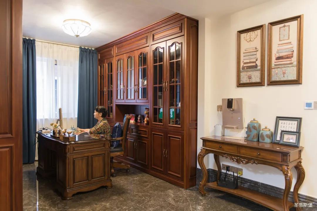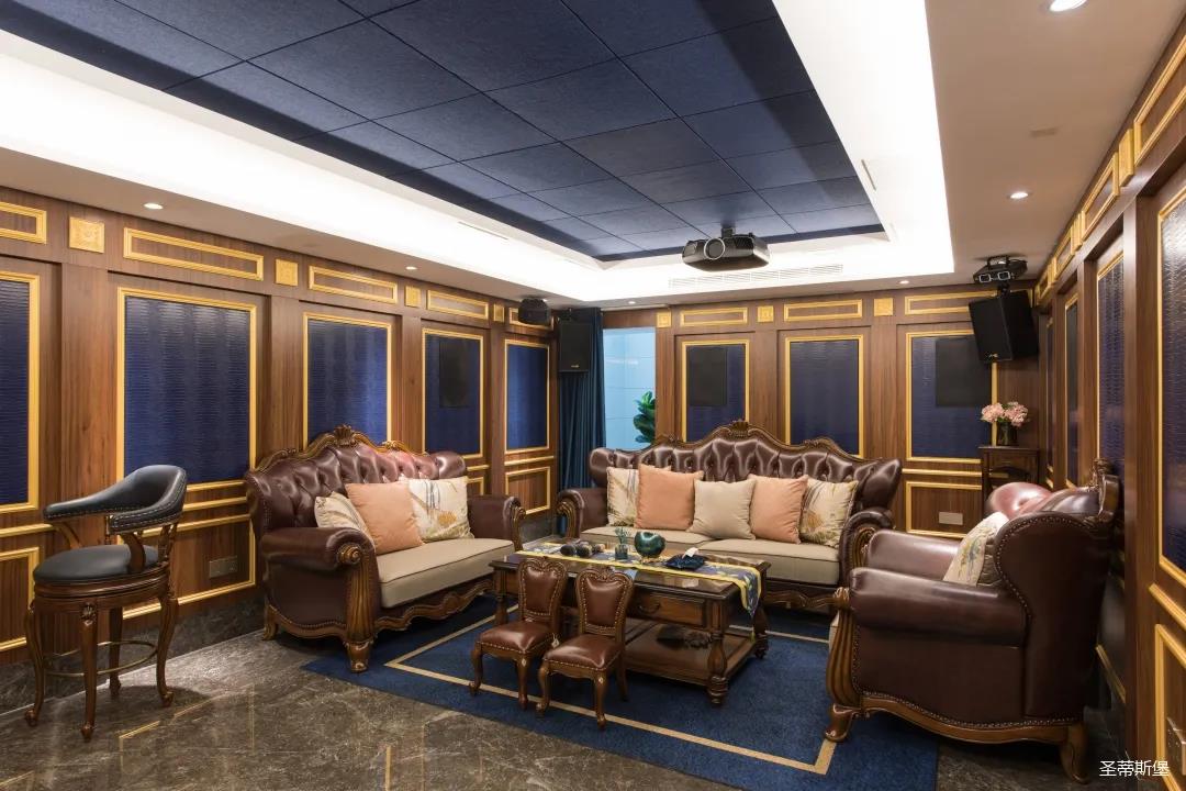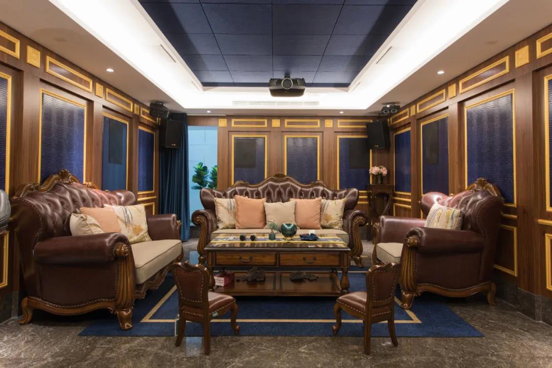 業(yè)主夫婦非常熱情好客,平時(shí)工作之余也會(huì)在家里邀三兩好友一起觀影,觀影室的整體設(shè)計(jì)容納著濃烈的古色古香,長方形圖案排列搭配復(fù)古的家具與配飾,精細(xì)的雕花藝術(shù),于細(xì)節(jié)之間演繹著精致生活。不管時(shí)光如何輾轉(zhuǎn)變換,家的定義從不曾改變,它撫慰著我們的心靈,承載著我們的喜樂,從細(xì)膩的質(zhì)感中感知家的點(diǎn)滴變化,才是對(duì)生活最真實(shí)的寫照。